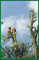 Baumsteiger Es gibt Gärten oder Anlagen, die keine Zufahrt haben, oder nur erschwert passierbar sind. Hier arbeiten wir mittels Seilsteigetechnik, um auf engstem Raum effizient und leistungsstark arbeiten zu können. Bei Baumabtragungen werden zum Teil auch Steigeisen verwendet.