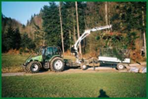 Kranentnahme Es ist des öfteren der Fall, daß schwere Stammteile und Astteile von Menschenhand nicht mehr manipuliert werden können. Zu diesem Zweck besitzen wir Kräne und Lader mit diversen Zusatzgeräten, um selbst schwere Stammteile aus Ihrem Garten heben und abtransportieren zu können.